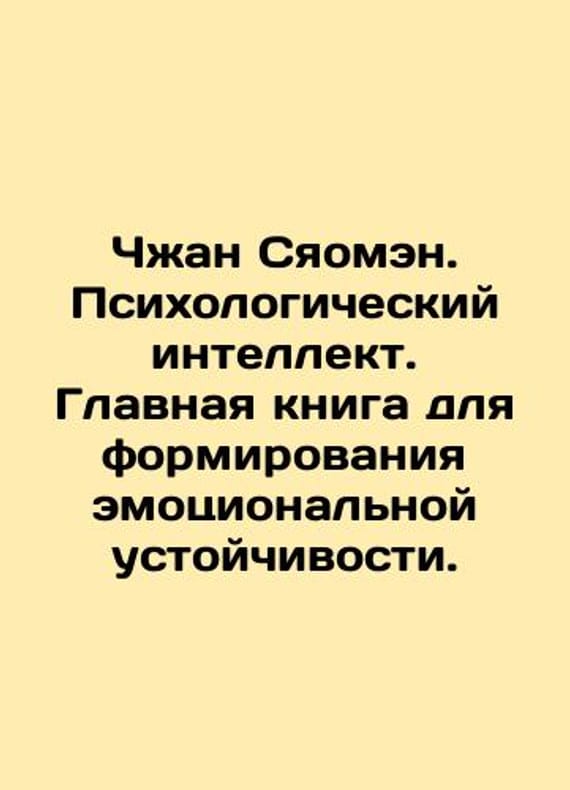 Zhang Xiaomen. Psychological Intelligence. The main book for building emotional resilience. In Russian /Chzhan Syaomen. Psikhologicheskiy intellekt. Glavnaya kniga dlya formirovaniya emotsionalnoy ustoychivosti. M Mann, Ivanov and Ferber. 2024 384 pp. We have thousands of titles and often several copies of each title may be available. Please feel free to contact us for a detailed description of the copies available. SKUalbbf1fd5fe88a314e9.