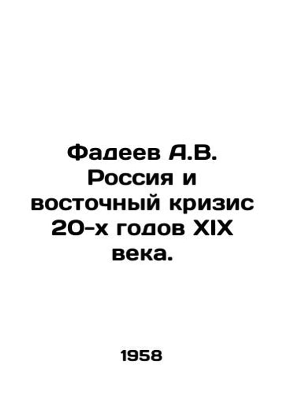 Fadeev A.V. Russia and the Eastern Crisis of the 1920s. In Russian /Fadeev A.V. Rossiya i vostochnyy krizis 20-kh godov XIX veka. Academy of Sciences of the USSR. Institute of History. M. Publishing House of the Academy of Sciences of the USSR. 1958. 396 p. We have thousands of titles and often several copies of each title may be available. Please feel free to contact us for a detailed description of the copies available. SKUalbbf20287f15251be1.