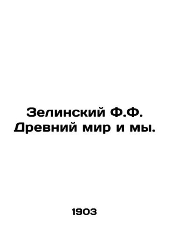 Zielinsky F.F. The Ancient World and Us. In Russian /Zelinskiy F.F. Drevniy mir i my. Lectures given to students in the final classes of St. Petersburg gymnasiums and real schools in the spring of 1903. St. Petersburg. Senate Printing House. 1903. We have thousands of titles and often several copies of each title may be available. Please feel free to contact us for a detailed description of the copies available. SKUalbbf3a41424677917b.