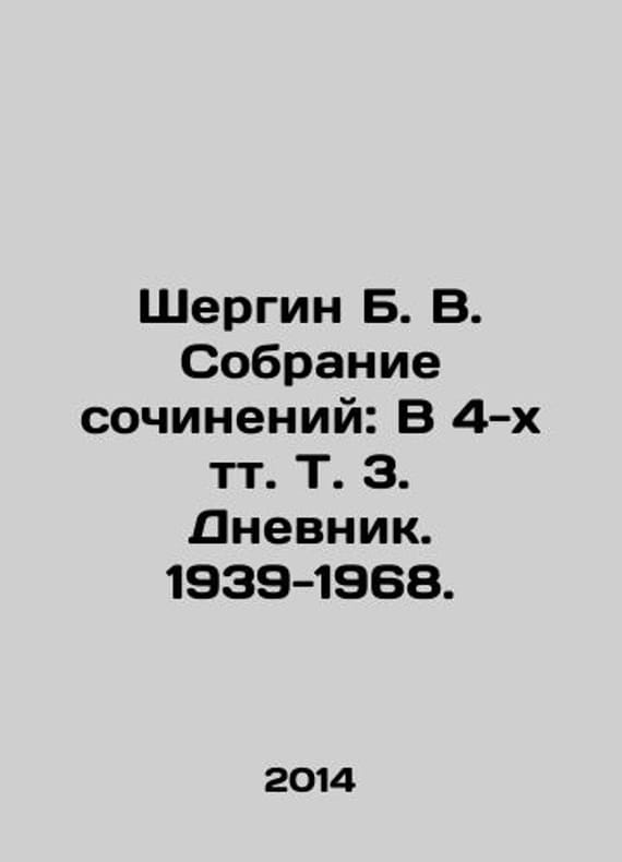 Shergin B. V. Collection of essays: In 4 volumes Vol. 3. Dnevnik. 1939-1968. In Russian (ask us if in doubt)/Shergin B. V. Sobranie sochineniy: V 4-kh tt. T. 3. Dnevnik. 1939-1968.M. Moskvovedenie 2014. 496 p. We have thousands of titles and often several copies of each title may be available. Please feel free to contact us for a detailed description of the copies available. SKUalbbfeaca1591516ec3