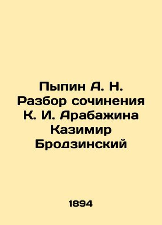Pypin A. N. Review of the essay by K. I. Arabazhin Kazimir Brodzinsky In Russian /Pypin A. N. Razbor sochineniya K. I. Arabazhina Kazimir Brodzinskiy And his literary activities (1791-1835) St. Petersburg printing house Imperial Academy of Sciences 1894. We have thousands of titles And often several copies of each title may be available. Please feel free to contact us for a detailed description of the copies available. SKUalbbffb66fec08033d0.