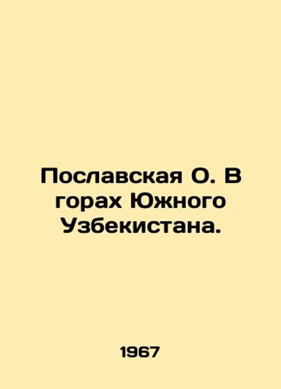Messenger O. In the mountains of southern Uzbekistan. In Russian /Poslavskaya O. V gorakh Yuzhnogo Uzbekistana. Tashkent. Uzbekistan 1967. 103c,. We have thousands of titles and often several copies of each title may be available. Please feel free to contact us for a detailed description of the copies available. SKUalbc008078aac967116.