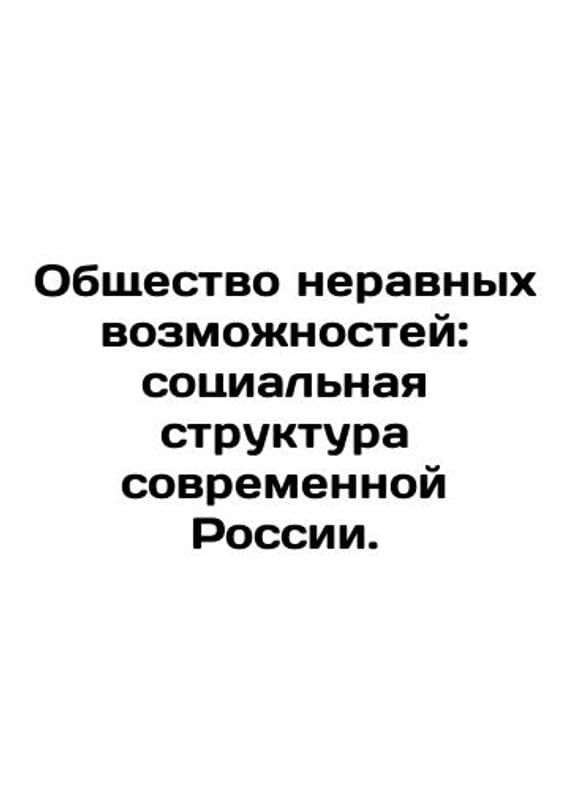 A society of unequal opportunities: the social structure of modern Russia. In Russian /Obshchestvo neravnykh vozmozhnostey: sotsialnaya struktura sovremennoy Rossii. Moscow All World 2022. 422 p. We have thousands of titles and often several copies of each title may be available. Please feel free to contact us for a detailed description of the copies available. SKUalbc028faf4826faa06.