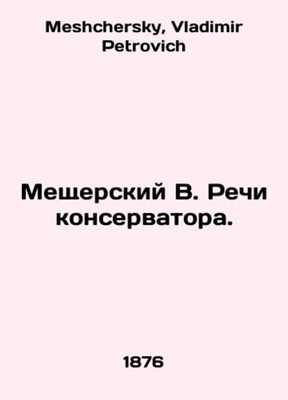 Meshchersky V. The Conservative Speech. In Russian /Meshcherskiy V. Rechi konservatora. Soc. Book by V. Meschersky. Saint Petersburg Printing and Lithography by V. Obolonsky, 1876. 178s. We have thousands of titles and often several copies of each title may be available. Please feel free to contact us for a detailed description of the copies available. SKUalbc054213ddb729669.
