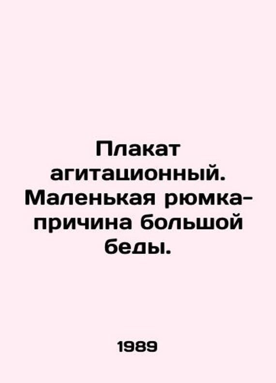 Campaign poster. A small sip is the cause of a big trouble. In Russian /Plakat agitatsionnyy. Malenkaya ryumka-prichina bolshoy bedy. Artist Agayan I.D. Moscow. Central Committee of the RSFSR Red Cross Society. 1989. We have thousands of titles and often several copies of each title may be available. Please feel free to contact us for a detailed description of the copies available. SKUalbc0b2bf953978e43c.