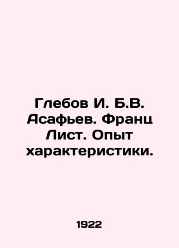 Glebov I. B.V. Asafiev. Franz List. Experience of characterization. In Russian /Glebov I. B.V. Asafev. Frants List. Opyt kharakteristiki. Petersburg Svetozar 1922. We have thousands of titles and often several copies of each title may be available. Please feel free to contact us for a detailed description of the copies available. SKUalbc1308563cc0c3a1a.