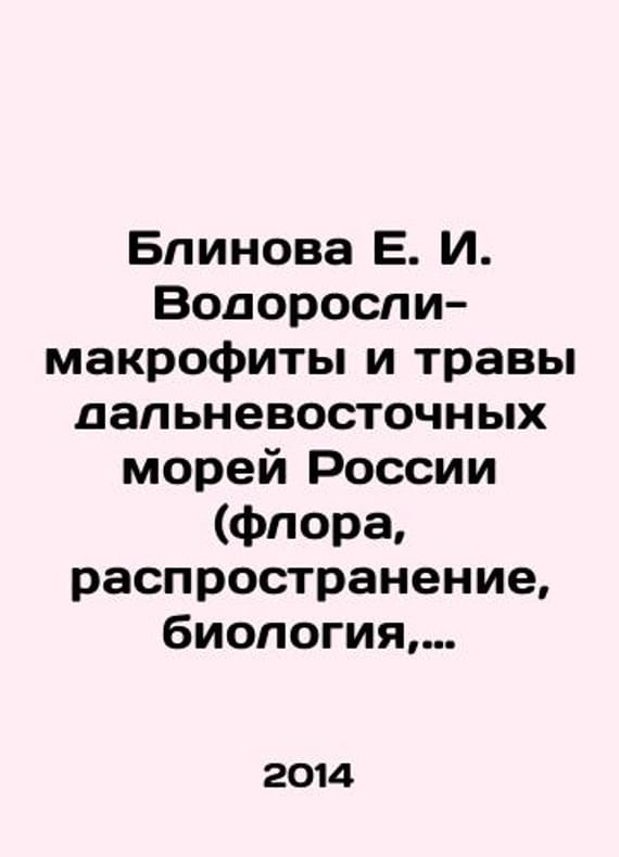 Blinova E. I. Algae-macrophytes and grasses of Russias Far Eastern seas (flora, distribution, biology, stocks, mariculture). In Russian /Blinova E. I. Vodorosli-makrofity i travy dalnevostochnykh morey Rossii (flora, rasprostranenie, biologiya, zapasy, marikultura). M. VNIRO 2014. 240 p. We have thousands of titles and often several copies of each title may be available. Please feel free to contact us for a detailed description of the copies available. SKUalbc13522d1b442b591.