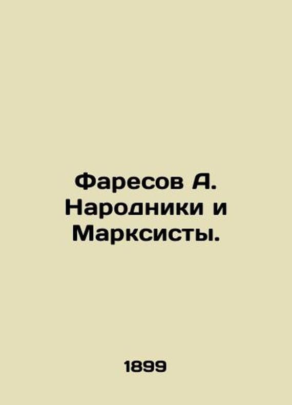 Faresov A. Narodniki and Marxists. In Russian /Faresov A. Narodniki i Marksisty. St. Petersburg Typogr. M.Markusheva 1899. We have thousands of titles and often several copies of each title may be available. Please feel free to contact us for a detailed description of the copies available. SKUalbc1a85749b472b76c.