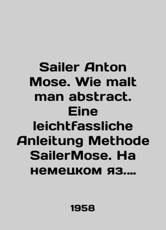 Sailer Anton Mose. Wie malt man abstract. Eine leichtfassliche Anleitung Methode SailerMose. In German. Learn how to draw abstractly. A Simple Guide by Sailer Moisha In Russian /Sailer Anton Mose. Wie malt man abstract. Eine leichtfassliche Anleitung Methode SailerMose. Na nemetskom yaz. Kak nauchitsya risovat abstraktno. Prostoe rukovodstvo Seylera Moyshi Berlin Eulenspiegel Verlag 1958, 56 p. We have thousands of titles and often several copies of each title may be available. Please feel free to contact us for a detailed description of the copies available. SKUalbc1b66d43c4c32ac8.