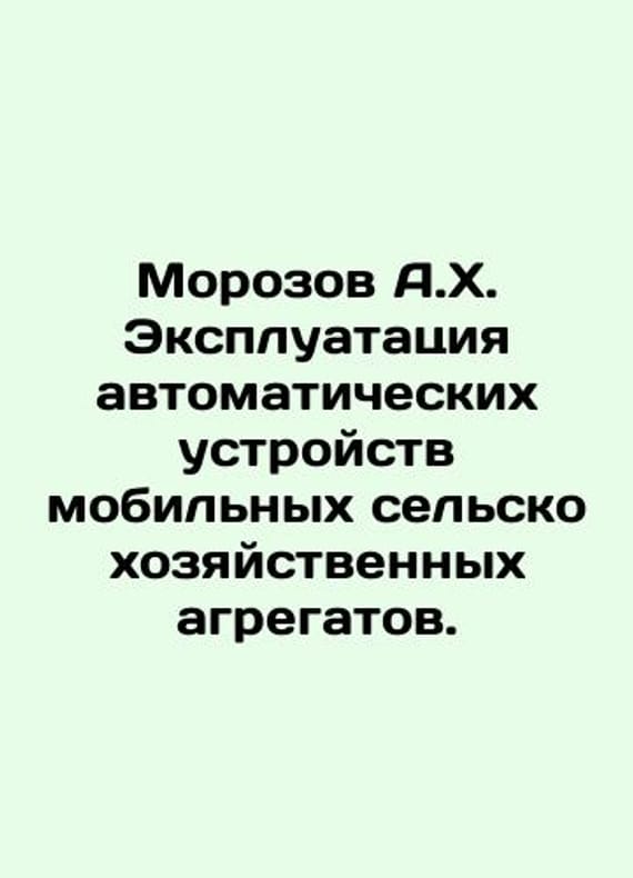Morozov A.H. Operation of Automatic Mobile Agricultural Aggregates. In Russian /Morozov A.Kh. Ekspluatatsiya avtomaticheskikh ustroystv mobilnykh selskokhozyaystvennykh agregatov. Morozov A.H. Operation of Automatic Mobile Agricultural Aggregates. We have thousands of titles and often several copies of each title may be available. Please feel free to contact us for a detailed description of the copies available. SKUalbc1d69ceda54311fd.