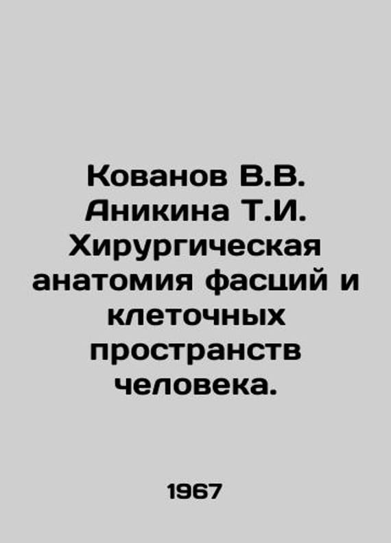 Kovanov V.V. Anikina T.I. Surgical Anatomy of Human Fascias and Cell Spaces. In Russian /Kovanov V.V. Anikina T.I. Khirurgicheskaya anatomiya fastsiy i kletochnykh prostranstv cheloveka. Edition 2 of M Medicine 1967. We have thousands of titles and often several copies of each title may be available. Please feel free to contact us for a detailed description of the copies available. SKUalbc1e5704641ad1774.