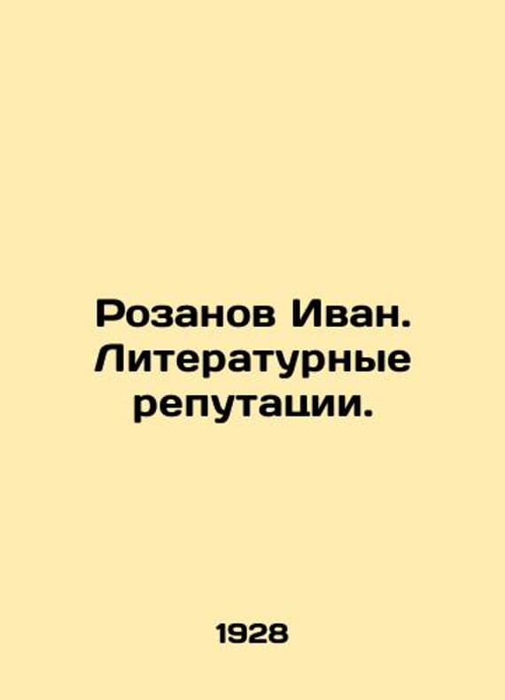 Ivan Rozanov. Literary Reputations. In Russian /Rozanov Ivan. Literaturnye reputatsii. Moscow. Cooperative Publishing House of Writers Nikitsky Subbotniki. 1928. 147 p. We have thousands of titles and often several copies of each title may be available. Please feel free to contact us for a detailed description of the copies available. SKUalbdd6548a5f96cd13f.