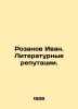 Ivan Rozanov. Literary Reputations. In Russian /Rozanov Ivan. Literaturnye reputatsii. M. Nikitinskie Subbotniki, The Cooperative Publishing House of Writers 1928. We have thousands of titles and often several copies of each title may be available. Please feel free to contact us for a detailed description of the copies available. SKUalbc20139343d5905b5.