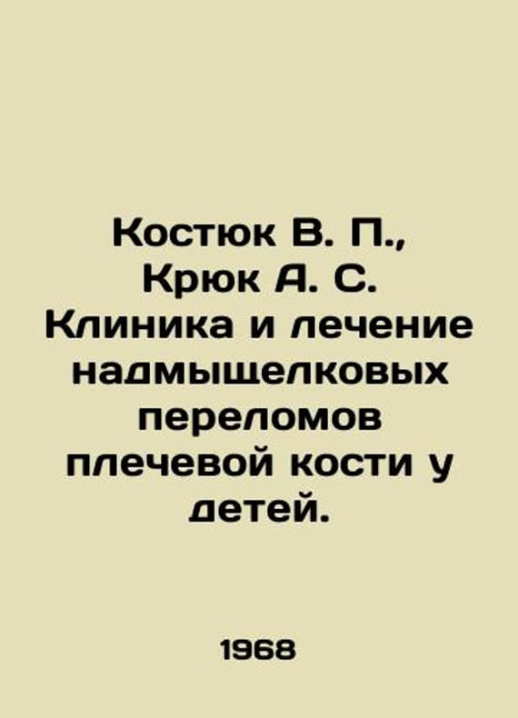 Kostyuk V. P. Kryuk A. S. Clinic and treatment of hyper-alkaline fractures of the humerus in children. /Kostyuk V. P. Kryuk A. S. Klinika i lechenie nadmyshchelkovykh perelomov plechevoy kosti u detey. Minsk. Belarus. 1968. 104 p. We have thousands of titles and often several copies of each title may be available. Please feel free to contact us for a detailed description of the copies available. SKUalbc274234b6fa2f3d4