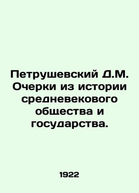 D.M. Petrushevsky Essays on the History of Medieval Society and the State. In Russian /Petrushevskiy D.M. Ocherki iz istorii srednevekovogo obshchestva i gosudarstva. M. Gosizdat 1922. We have thousands of titles and often several copies of each title may be available. Please feel free to contact us for a detailed description of the copies available. SKUalbc278742d3b9926a8.