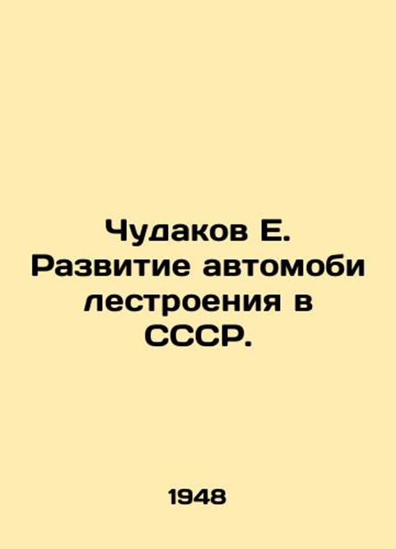 E. Chudakov: The development of automobile industry in the USSR. In Russian /Chudakov E. Razvitie avtomobilestroeniya v SSSR. All-Union Society for the Dissemination of Political and Scientific Knowledge 1948, 56 p. We have thousands of titles and often several copies of each title may be available. Please feel free to contact us for a detailed description of the copies available. SKUalbc28be3ad152935f9.