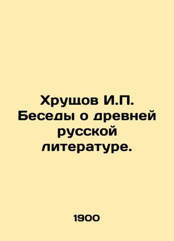 Khrushchev I.P. Conversations on ancient Russian literature. In Russian (ask us if in doubt)/Khrushchov I.P. Besedy o drevney russkoy literature.. Society of zealots of Russian historical enlightenment in memory of Emperor Alexander III. St. Petersburg Typography of M. Akinfiev and I. Leontiev. 1900. 2 VIII 2 330 2 p. SKUalbc28d48a2379350eb.