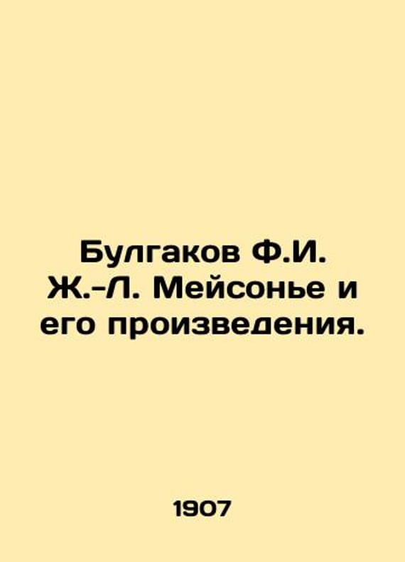 Bulgakov F.I. J.-L. Masonye and his works. In Russian /Bulgakov F.I. Zh.-L. Meysone i ego proizvedeniya. St. Petersburg Printing House of Engineer H.A. Bernstein 1907. We have thousands of titles and often several copies of each title may be available. Please feel free to contact us for a detailed description of the copies available. SKUalbc2bdc32bd09f3d48.