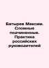 Maxim Batyrev. Complex Subordinates. The Practice of Russian Leaders In Russian /Batyrev Maksim. Slozhnye podchinennye. Praktika rossiyskikh rukovoditeleySeries: Rules of Combat M Mann, Ivanov and Ferber 2021. 288We have thousands of titles and often several copies of each title may be available. Please feel free to contact us for a detailed description of the copies available. SKUalbc2e6b8d649339c86.