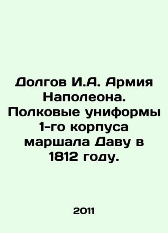Dolgov I. A. Napoleons Army. Regimental uniforms of the 1st Marshal Dawa Corps in 1812. In Russian /Dolgov I.A. Armiya Napoleona. Polkovye uniformy 1-go korpusa marshala Davu v 1812 godu. M. Vanderhof Workshop 2011, 274s. We have thousands of titles and often several copies of each title may be available. Please feel free to contact us for a detailed description of the copies available. SKUalbc331b6c0a583ce5c.
