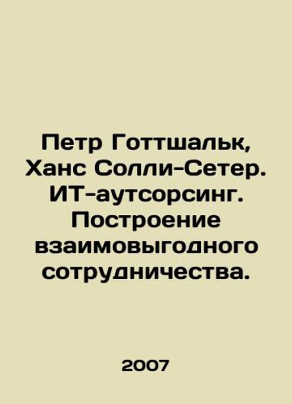 Peter Gottschalk, Hans Solly-Seter. IT outsourcing. Building mutually beneficial cooperation. In Russian /Petr Gottshalk, Khans Solli-Seter. IT-autsorsing. Postroenie vzaimovygodnogo sotrudnichestva. M Alpina Business Book. 2007 394 pp. We have thousands of titles and often several copies of each title may be available. Please feel free to contact us for a detailed description of the copies available. SKUalbc3a8d7230efacbc1.