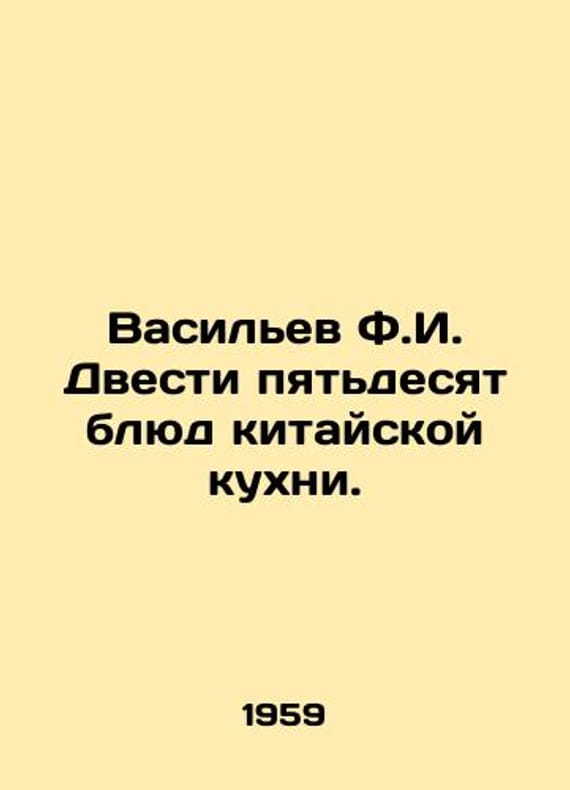 Vasiliev F.I. Two hundred and fifty dishes of Chinese cuisine. In Russian /Vasilev F.I. Dvesti pyatdesyat blyud kitayskoy kukhni.M. Gostorgizdat. 1959.We have thousands of titles and often several copies of each title may be available. Please feel free to contact us for a detailed description of the copies available. SKUalbdf7d13126337c2bf.