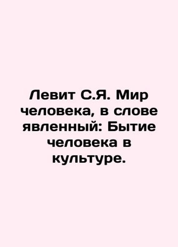 Leviticus S.Ya. The world of man revealed in the word: Being man in culture In Russian /Levit S.Ya. Mir cheloveka, v slove yavlennyy: Bytie cheloveka v kulture In Russian. Series: Cultural Studies of the 20th Century St. Petersburg Center for Humanitarian Initiatives 2022. 624 p. We have thousands of titles and often several copies of each title may be available. Please feel free to contact us for a detailed description of the copies available. SKUalb91774cc168da556a
