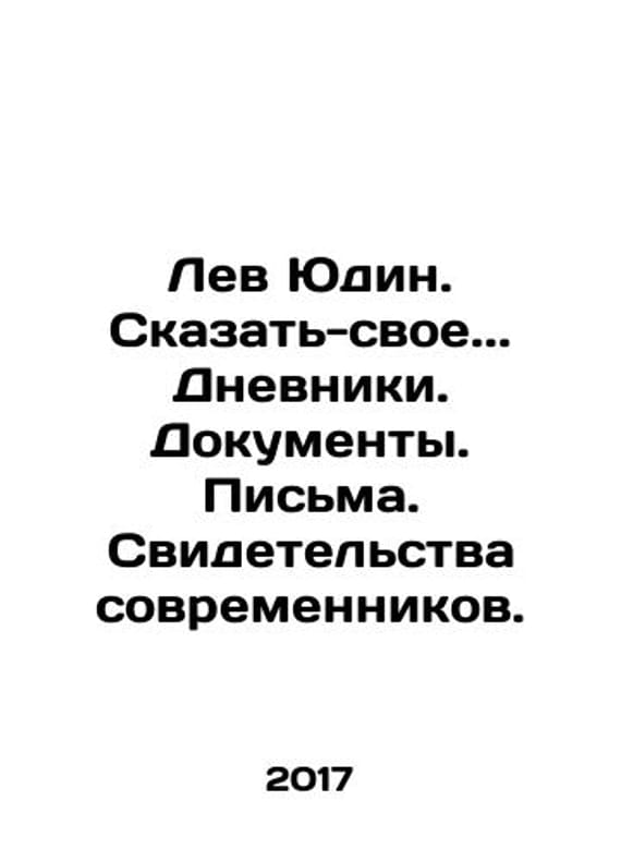 Lev Yudin. Tell your own story.. Diaries. Documents. Letters. Testimonies of con. M. Foundation Russian Avant-Garde 2017. 903 p. SKUalbc3ef9438501c97b5.