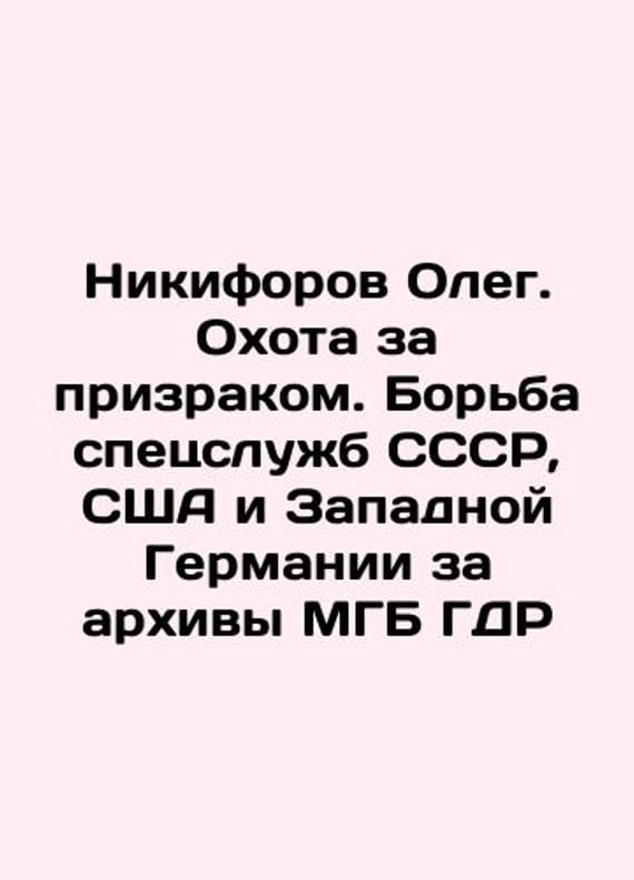 Oleg Nikiforov: The Ghost Hunt: The Struggle of the Special Services of the USSR, the United States, and West Germany for the archives of the GDRs MGB In Russian /Nikiforov Oleg. Okhota za prizrakom. Borba spetssluzhb SSSR, SShA i Zapadnoy Germanii za arkhivy MGB GDR Centropolygraph 2021. 287s. We have thousands of titles and often several copies of each title may be available. Please feel free to contact us for a detailed description of the copies available. SKUalbc4353a17f3f2d4d0.