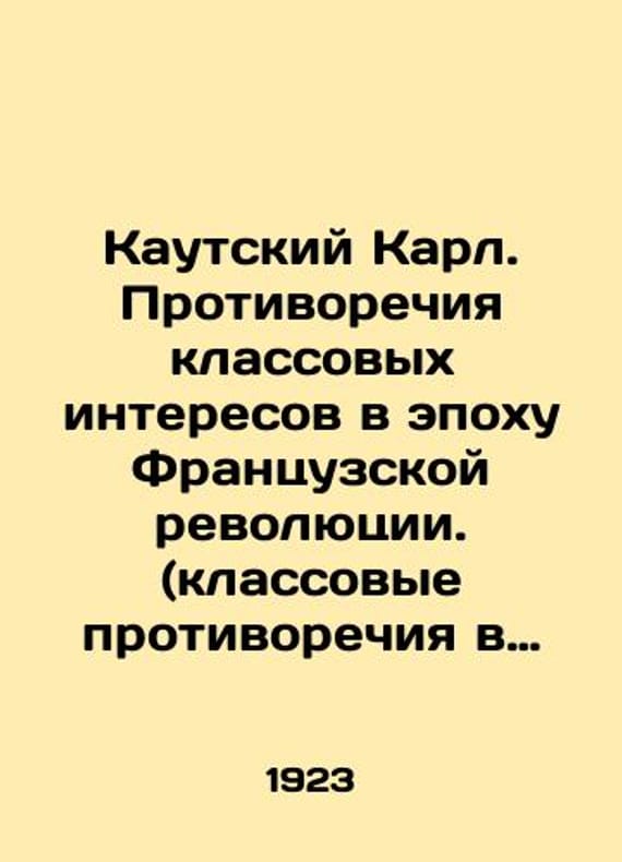 Kautsky Karl. Contradictions of Class Interests in the Age of the French Revolution. (Class Contradictions in the Age of the French Revolution.) In Russian /Kautskiy Karl. Protivorechiya klassovykh interesov v epokhu Frantsuzskoy revolyutsii. (klassovye protivorechiya v epokhu Frantsuzskoy revolyutsii.) Translated from it. Kharkov: The Proletarian. 1923. We have thousands of titles and often several copies of each title may be available. Please feel free to contact us for a detailed description of the copies available. SKUalbc44e4d93b871369c.