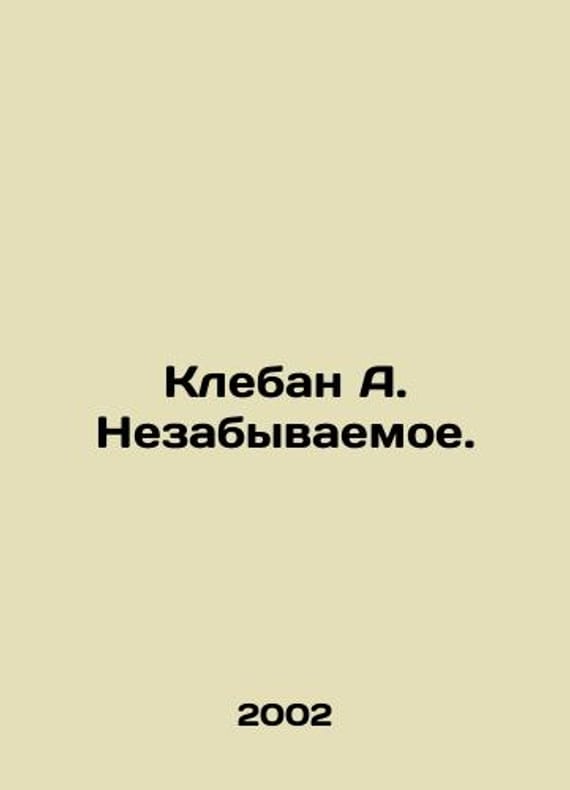 Kleban A. Unforgettable. In Russian /Kleban A. Nezabyvaemoe. Chicago OKHO Publishing 2002. 186s. We have thousands of titles and often several copies of each title may be available. Please feel free to contact us for a detailed description of the copies available. SKUalbc465d0a262199c8d.