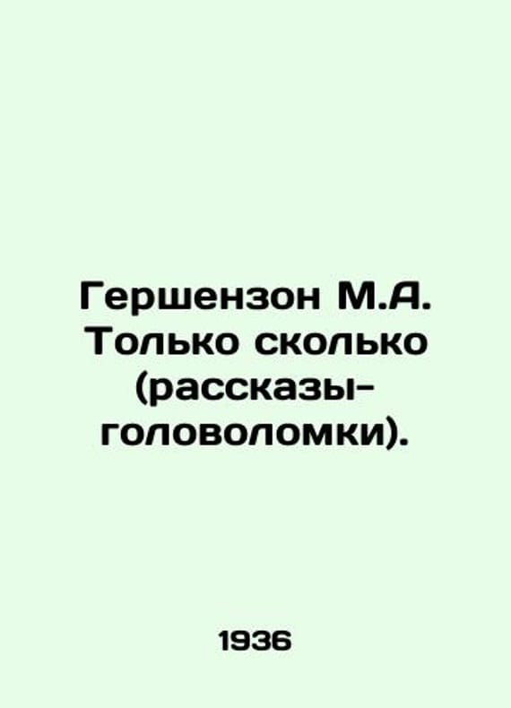Gershenson M.A. Just how many (puzzle stories). In Russian /Gershenzon M.A. Tolko skolko (rasskazy-golovolomki). Sketches by T.Aleksandrov. Edition 2, supplemented by M. Detgiz. 1936. 136s. We have thousands of titles and often several copies of each title may be available. Please feel free to contact us for a detailed description of the copies available. SKUalbc46bfdca4b627f35.