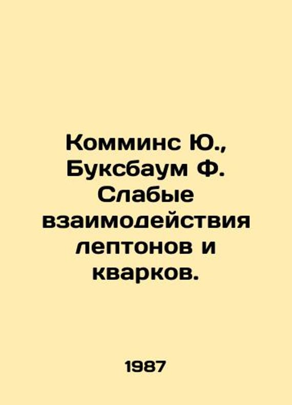 Commins Yu, Buxbaum F. Weak interactions between leptons and quarks. In Russian /Kommins Yu., Buksbaum F. Slabye vzaimodeystviya leptonov i kvarkov. M. Energoatomizdat 1987, 440 p. We have thousands of titles and often several copies of each title may be available. Please feel free to contact us for a detailed description of the copies available. SKUalbc521c1b08b98f54c.