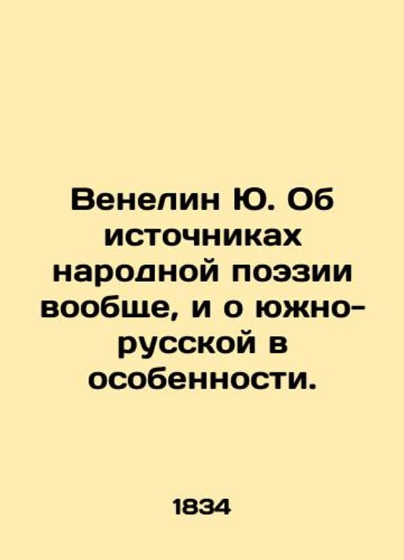 Venelin Yu. On the sources of folk poetry in general, and Southern Russian poetry in particular. In Russian /Venelin Yu. Ob istochnikakh narodnoy poezii voobshche, i o yuzhno-russkoy v osobennosti. M. V Type. N. Stepanova. 1834. 2, 60 p. We have thousands of titles and often several copies of each title may be available. Please feel free to contact us for a detailed description of the copies available. SKUalbc547303e6793d40f.