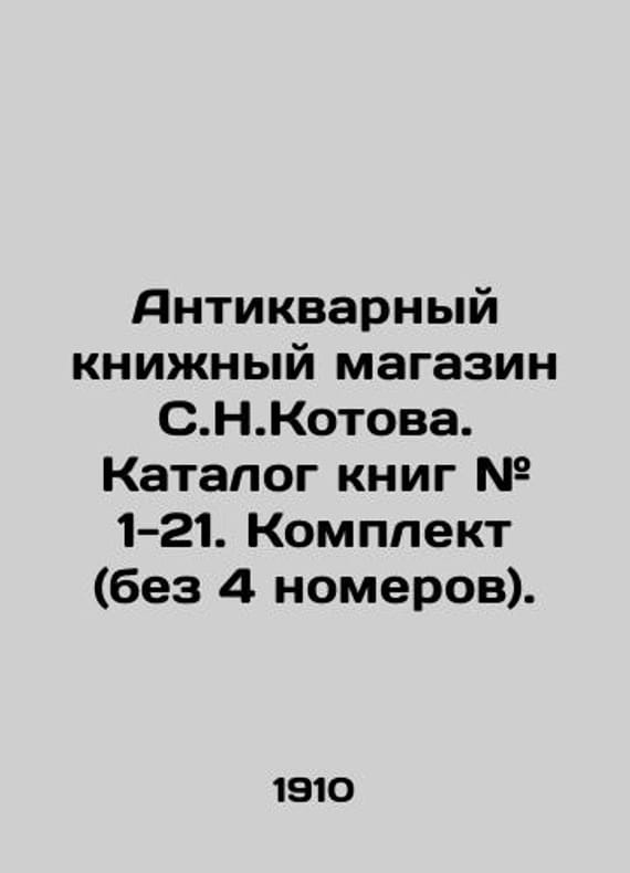 S.N.Kotov antique bookstore. Book catalogue # 1-21. Set (without 4 numbers). In Russian (ask us if in doubt)/Antikvarnyy knizhnyy magazin S.N.Kotova. Katalog knig # 1-21. Komplekt (bez 4 nomerov). Short description: In Russian (ask us if in doubt).St. Petersburg 1910-1916. In 1890 he came to St. Petersburg and joined E.A. Petrovas bookstore. At the end of 1904 he opened his own bookstore at Novo-Aleksandrovsky market in 1906 he opened a shop at 53 Liteiny Avenue. The stores assortment was dominated by books on archaeology archival studies oriental studies history and linguistics We have thousands of titles and often several copies of each title may be available. Please feel free to contact us for a detailed description of the copies available. SKUalbc54a9a03c274fd4e