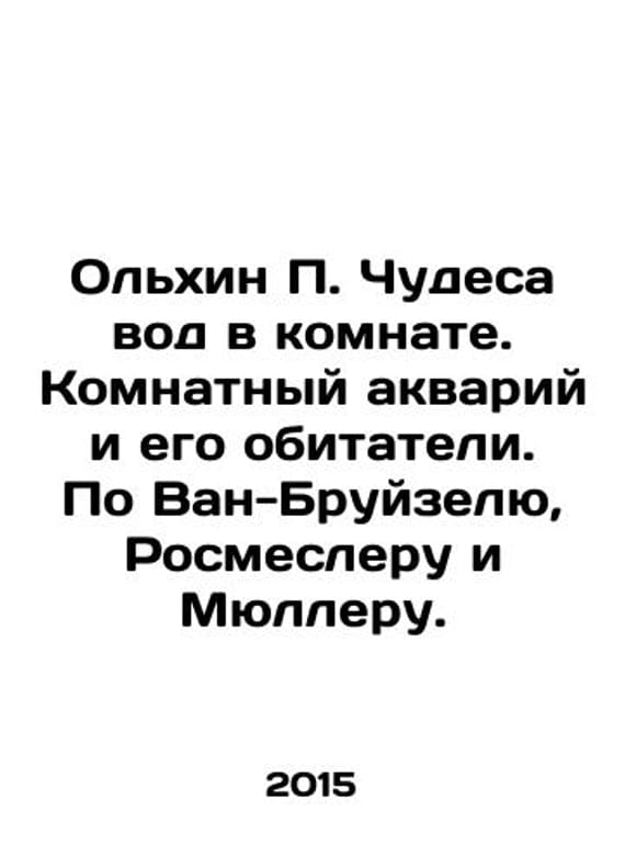 Olkhin P. The Miracles of Water in a Room. The Room Aquarium and its Residents. According to Van Bruisel, Rosmessler, and Mueller. In Russian /Olkhin P. Chudesa vod v komnate. Komnatnyy akvariy i ego obitateli. Po Van-Bruyzelyu, Rosmesleru i Myulleru. Moscow Publishing House V. Sekachev 2015 116s. We have thousands of titles and often several copies of each title may be available. Please feel free to contact us for a detailed description of the copies available. SKUalbc569962dad69a43a.
