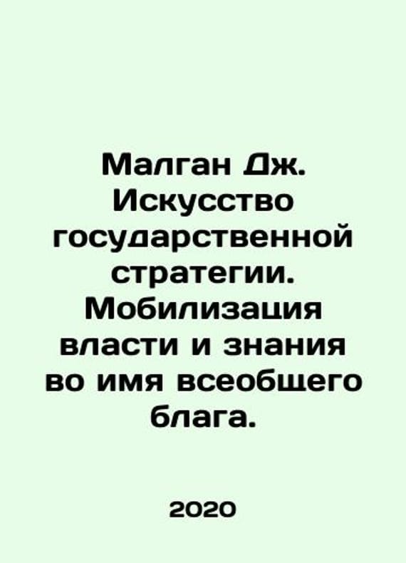 Malgan J. The Art of Public Strategy: Mobilizing Power and Knowledge for the Common Good. In Russian /Malgan Dzh. Iskusstvo gosudarstvennoy strategii. Mobilizatsiya vlasti i znaniya vo imya vseobshchego blaga. M Publishing House of the Gaidar Institute. 2020. 472 pp. We have thousands of titles and often several copies of each title may be available. Please feel free to contact us for a detailed description of the copies available. SKUalbc57ede39ecab6e1b.