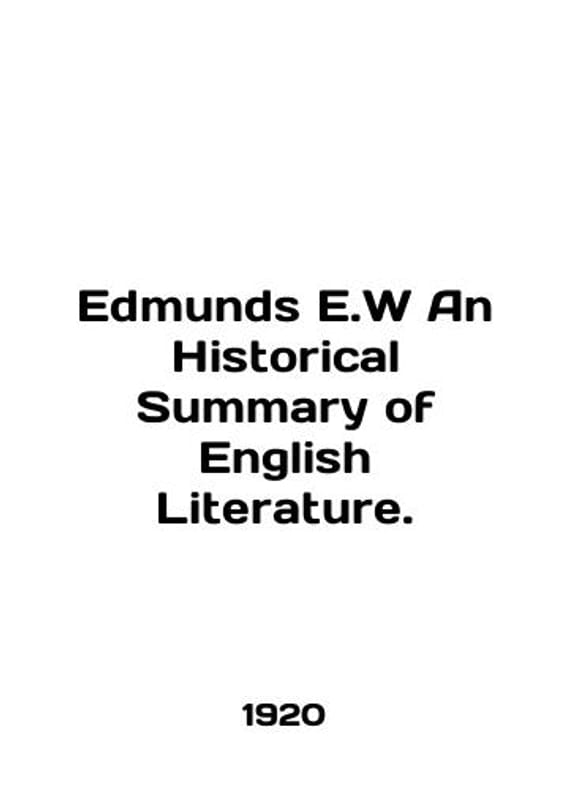 Edmunds E.W An Historical Summary of English Literature. In English /Edmunds E.W An Historical Summary of English Literature. With full index londonNew York. Toronto Melbourne Cassell And company.LTD 1920 275s. We have thousands of titles and often several copies of each title may be available. Please feel free to contact us for a detailed description of the copies available. SKUalbc59a96ec69b412e4.