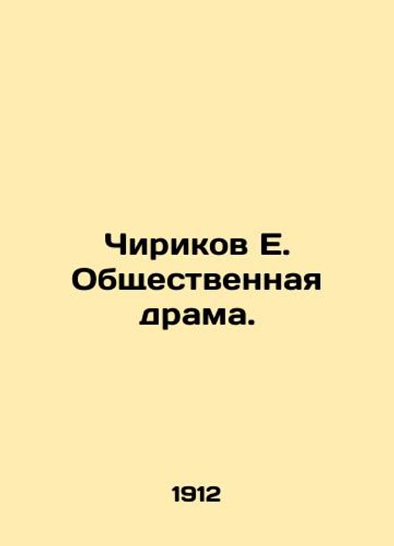 Chirikov E. The Public Drama. In Russian /Chirikov E. Obshchestvennaya drama. Moscow, 1912. 278 p. We have thousands of titles and often several copies of each title may be available. Please feel free to contact us for a detailed description of the copies available. SKUalbc59bd4cf1425bd5d.