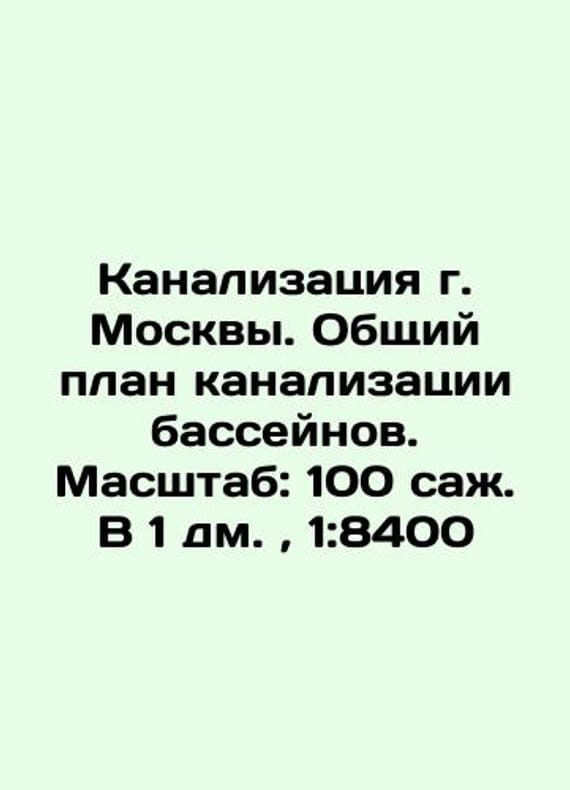 Sewerage of Moscow. General sewerage plan of basins. Scale: 100 soot. In 1 dm 1: 8400 In Russian (ask us if in doubt)/Kanalizatsiya g. Moskvy. Obshchiy plan kanalizatsii basseynov. Masshtab: 100 sazh. V 1 dm. 1:8400R. Bachmanns Color Lithography. Bachmanns Typography Early 20th Century. 108x78 sm. SKUalbc6135c9c6f007f62.