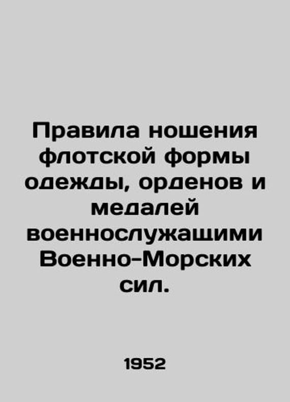 Rules for Navy uniforms, orders and medals for members of the Navy. In Russian /Pravila nosheniya flotskoy formy odezhdy, ordenov i medaley voennosluzhashchimi Voenno-Morskikh sil. M., Naval Publishing House of the Naval Ministry of the Union of Soviet Socialist Republics, 1952, 64c. We have thousands of titles and often several copies of each title may be available. Please feel free to contact us for a detailed description of the copies available. SKUalbc61d126ff62ae5bf.