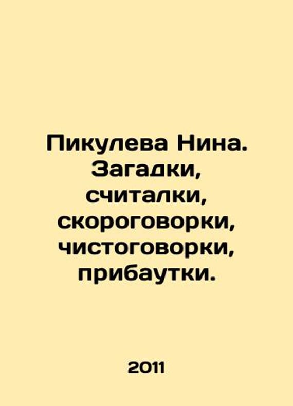 Pikuleva Nina. Puzzles, calculators, quick-witted talk, plain talk, quips. In Russian /Pikuleva Nina. Zagadki, schitalki, skorogovorki, chistogovorki, pribautki. Yaroslavl. Academy of Development. 2011. 352p. We have thousands of titles and often several copies of each title may be available. Please feel free to contact us for a detailed description of the copies available. SKUalbc65a9cf7114da024.