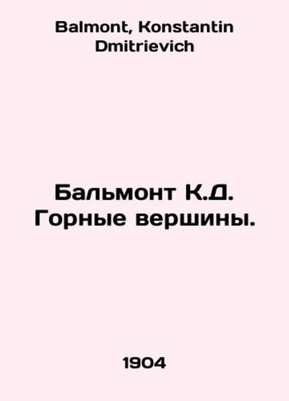 Balmont C.D. Highlands. In Russian /Balmont K.D. Gornye vershiny. Collection of Articles. Book One. M. Griff Book Publishing House. 1904. lV, 209 pp. We have thousands of titles and often several copies of each title may be available. Please feel free to contact us for a detailed description of the copies available. SKUalbc6a4760bbbda9c68.