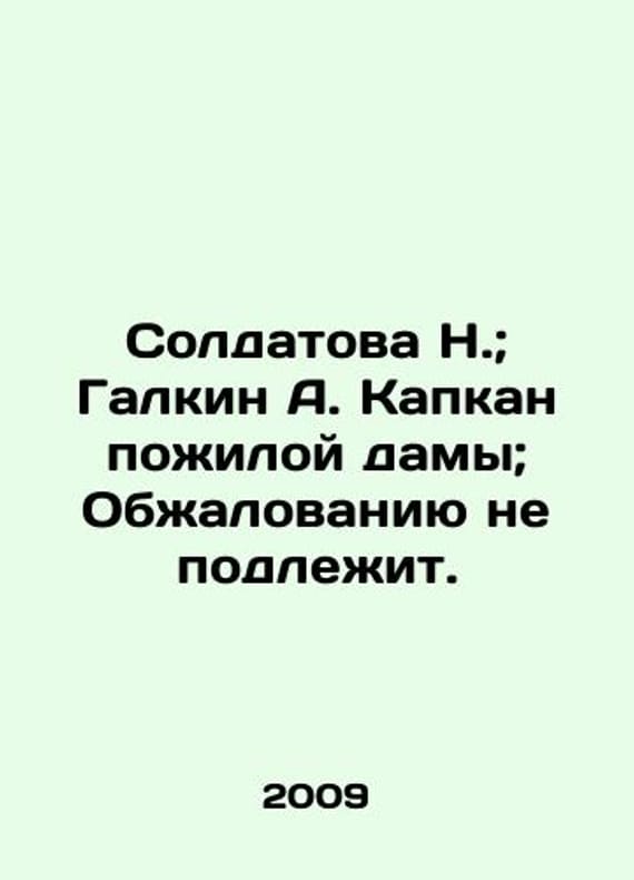 "Soldatova N.; Galkin A. Kapkan to an elderly lady; no appeal. In Russian /Soldatova N.; Galkin A. Kapkan pozhiloy damy; Obzhalovaniyu ne podlezhit. M feat 2009.We have thousands of titles and often several copies of each title may be available. Please feel free to contact us for a detailed description of the copies available. SKUalbc6d81b8e69c3fecd."