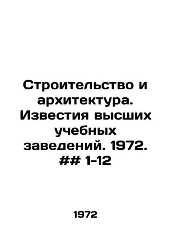 Construction and Architecture. Proceedings of Higher Education Institutions. 1973 # # 1-12 In Russian /Stroitelstvo i arkhitektura. Izvestiya vysshikh uchebnykh zavedeniy. 1973 ## 1-12 Novosibirsk. Publishing House of the Kuibyshev Institute. 1973. Filed under: Construction Structures: Theory of Engineering Structures: Architecture: Building Materials and Products: Economics and Organization of Construction: Hydrotechnical Construction: Sanitary Engineering: Construction of Roads and Bridges: Construction and Road Machines: Scientific and Methodological Section: In Higher Education Laboratories: Reviews: Abstracts.We have thousands of titles and often several copies of each title may be available. Please feel free to contact us for a detailed description of the copies available.SKUalb08004f23ce6192ba.