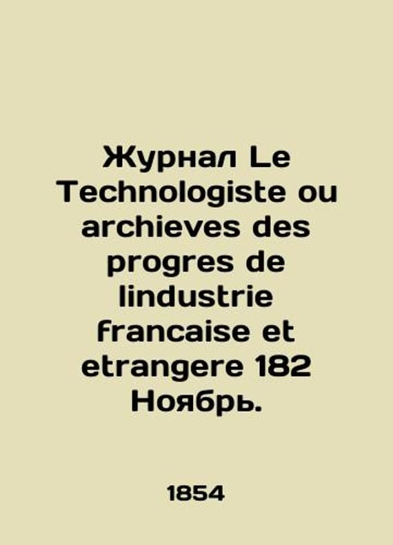 Le Technologiste ou archives des progres de lindustrie francaise et etrangere 182 November. In Russian /Zhurnal Le Technologiste ou archieves des progres de lindustrie francaise et etrangere 182 Noyabr. Paris A la Librairie Encyclopedique de Roret 1854. 45c. We have thousands of titles and often several copies of each title may be available. Please feel free to contact us for a detailed description of the copies available. SKUalbc7968718d98fedbe.
