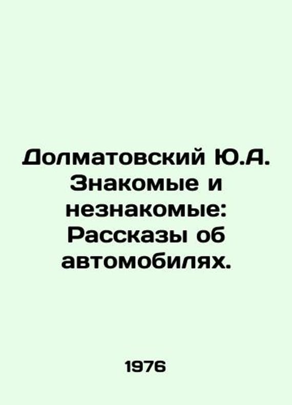 Dolmatovsky Yu.A. Acquaintances and Strangers: Tales of Cars. In Russian /Dolmatovskiy Yu.A. Znakomye i neznakomye: Rasskazy ob avtomobilyakh. M child.lit. 1976. We have thousands of titles and often several copies of each title may be available. Please feel free to contact us for a detailed description of the copies available. SKUalbc7a29ea56d991558.