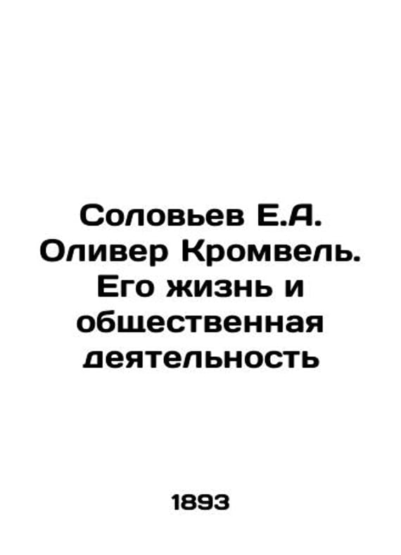 Solovyov E.A. Oliver Cromwell. His Life and Social Activities In Russian (ask us if in doubt)/Solovev E.A. Oliver Kromvel. Ego zhizn i obshchestvennaya deyatelnostBiographical Essay. With a portrait of Cromwell engraved in Leipzig by Gedan. Series: JZL The Lives of Wonderful People. F. Pavlenkovs Biographical Library of St. Petersburg: The Printing House of the Partnership for Public Benefit Y.N. Ehrlichs Printing House 1893. 96 p. We have thousands of titles and often several copies of each title may be available. Please feel free to contact us for a detailed description of the copies available. SKUalbc7b91115d5b3ff12