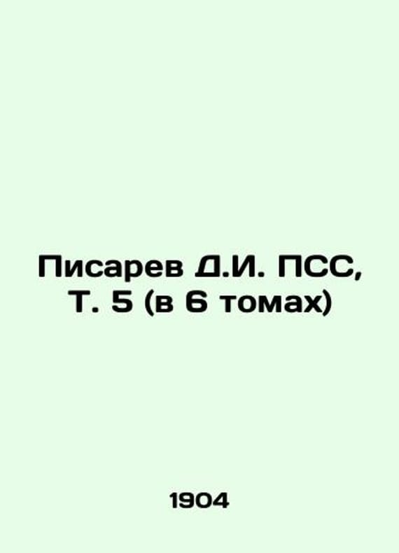Pisarev D.I. PSS, Vol. 5 (in 6 volumes) In Russian /Pisarev D.I. PSS, T. 5 (v 6 tomakh) Fourth edition of Pavlenkova F. S-Pb. Erlich Y.N. printing house, 1904. 576 volume. Fabric roots, encyclopedic. Pushkin and Belinsky. The feats of European authorities. Lets look at the Growing Humanity. The dead and the dying. Historical ideas of Auguste Comte. Popularizers of negative doctrines. We have thousands of titles and often several copies of each title may be available. Please feel free to contact us for a detailed description of the copies available. SKUalbc7dc70ade05cface.