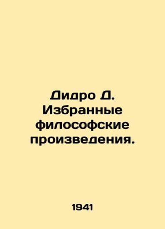Didero D. Selected philosophical works. In Russian /Didro D. Izbrannye filosofskie proizvedeniya. M. OGIZ. 1941. 279 p. We have thousands of titles and often several copies of each title may be available. Please feel free to contact us for a detailed description of the copies available. SKUalbc8049a5fbb9915a3.